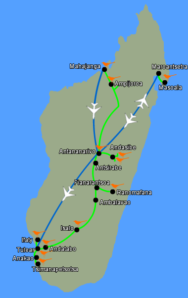 | Top targets | Madagascan Sacred Ibis, Madagascan Fish Eagle, Henst’s Goshawk, Bernier’s Teal , Long-tailed, Rufous-headed, Pitta-like, Short-legged Ground Roller, Subdesert, Brown & White-breasted Mesite, Coquerel’s Coua, Giant Coua, Verreaux’s Coua, Running Coua, Crested Coua, Blue Coua, Red-breasted Coua, Schlegel’s Asity, Velvet Asity, Helmet Vanga, Bernier’s Vanga, Red-shouldered Vanga, Pollen’s Vanga, Van Dam’s Vanga, Nuthatch Vanga, Sickle-billed Vanga, Madagascan Buzzard, Benson’s Rock Thrush, Appert’s Tetraka, Madagascar Wood Rail, Madagascan Flufftail, Madagascan Sandgrouse, Pygmy goose, White-backed duck |